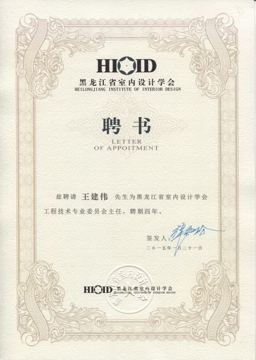 2015年1月21日黑龍江省室內(nèi)設(shè)計(jì)學(xué)會(huì)聘書(shū)